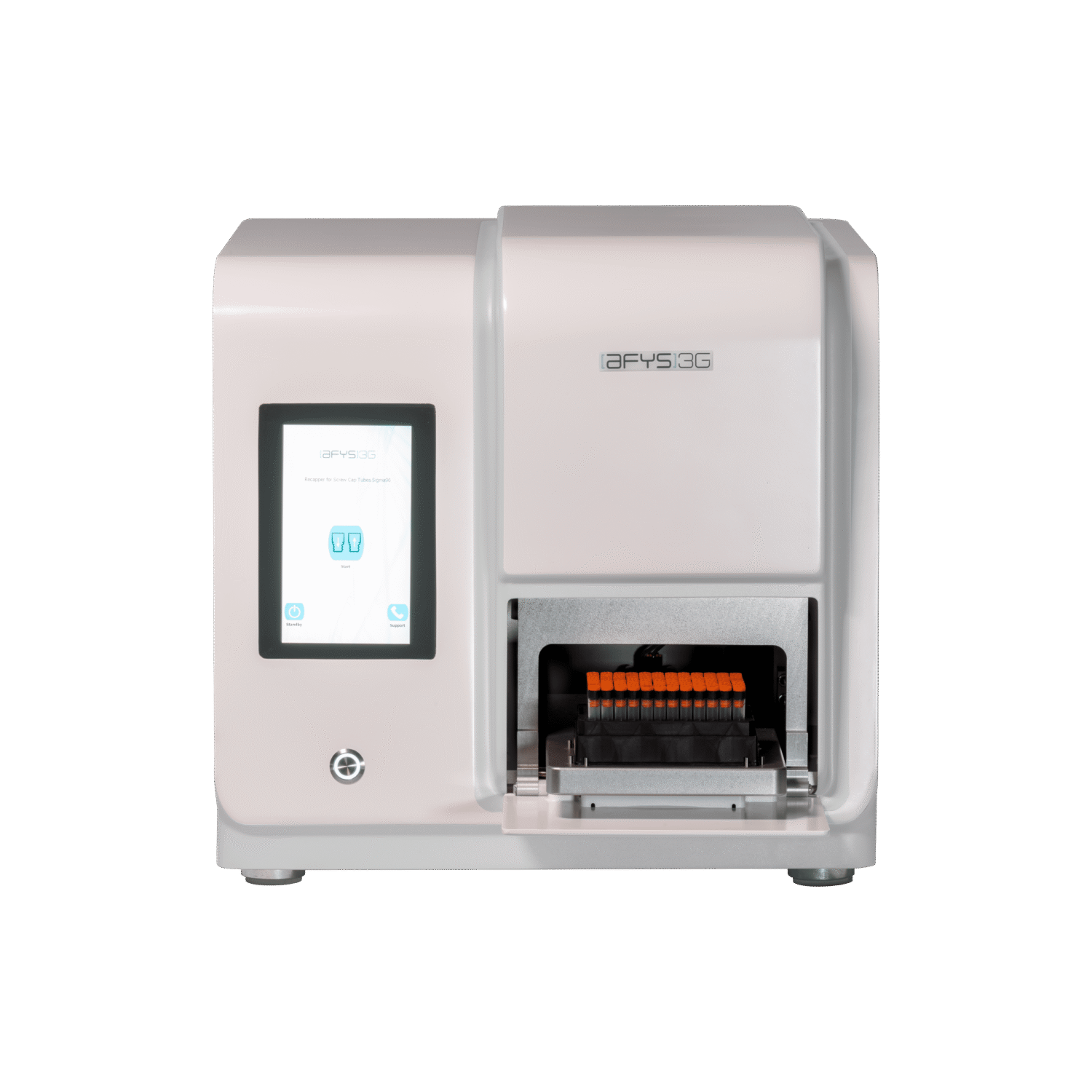 With the focus on accelerating your workflow, NBS Scientific offers a robust recapping solution the Recapper for Screw Cap Tubes Sigma by AFYS3G. Because the Sigma is designed with efficiency in mind, it can be operated as a stand-alone instrument or integrated into a fully automated laboratory environment. By replacing manual labour with automation, researchers can focus on what matters most: Doing effective research. The Sigma is ideal for high throughput workflows because in less than 30 seconds it can (de)cap a whole rack of sample storage tubes. The Sigma by AFYS3G has three different editions: The Sigma96 for 96-well racks, Sigma48 for 48-well racks and the Sigma24 for 24-well racks.