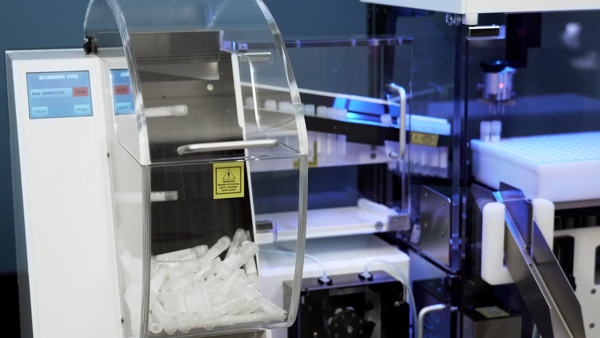 The VXQ is compatible with a wide variety of tubes and has a large buffer tank to hold a ton of tubes. This flexible design allows for an easy integration into the current system and allows the user to easily change tube types, all with the touch of a button.